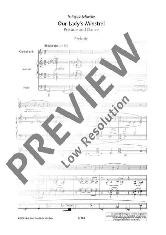 The edition is the first part of the commissioned work Our Lady’s Minstrel. While Prelude paraphrases the famous chorale Salve Regina in a slow waltz, the gipsy-like cheerful waltz of Dance forms a stark contrast to it. The whole work is completed by Three Poems for soprano and organ (ED 22299).