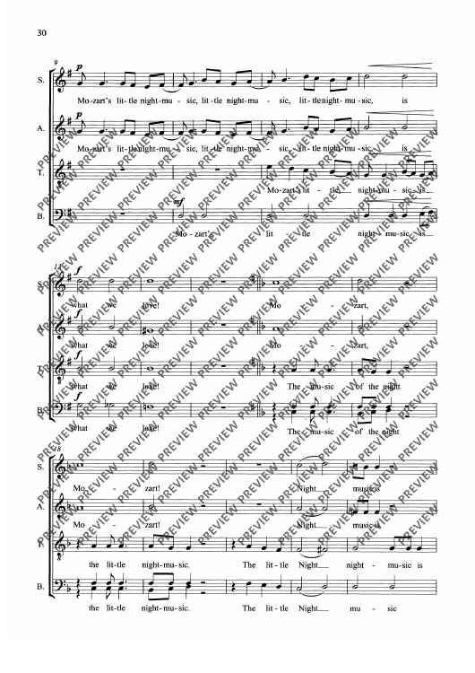 Digital Sheet Music for Our Little Nightmusic by Wolfgang Amadeus Mozart, Manfred Sievritts scored for Mixed Choir (satb) A Cappella; id:499197