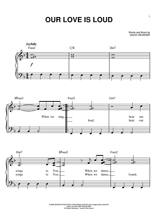 Digital Sheet Music for Our Love Is Loud by David Crowder scored for Easy Piano; id:383366
