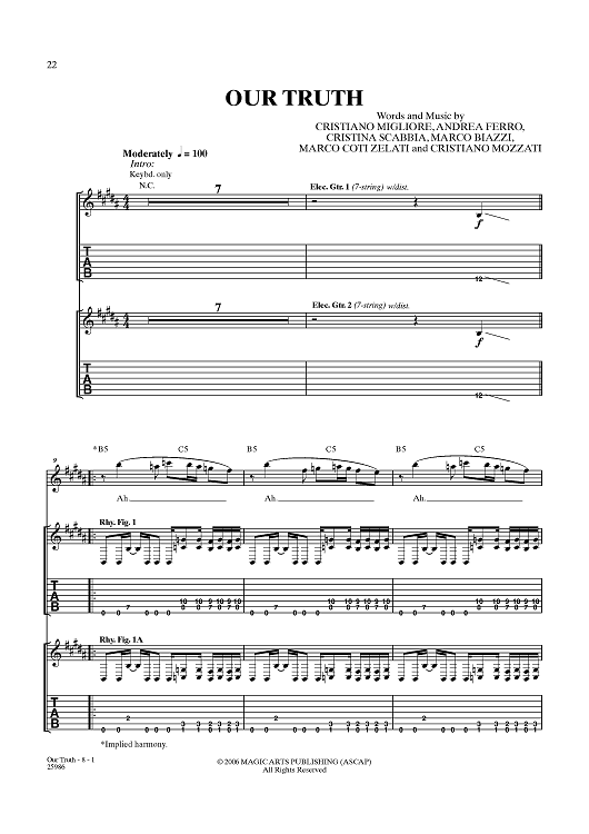 Digital Sheet Music for Our Truth by Lacuna Coil, Cristiano Migliore, Andrea Ferro, Cristina Scabbia, Marco Biazzi, Marco Coti Zelati, Cristiano Mozzati scored for Guitar Tab/Vocal; id:360004
