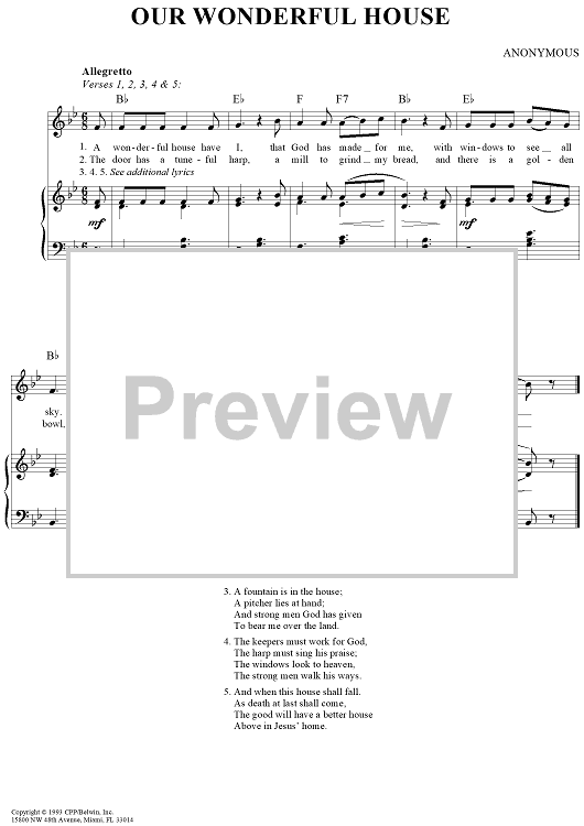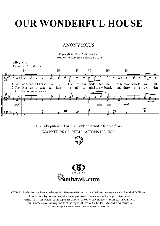 Digital Sheet Music for Our Wonderful House by Unknown Writer scored for Piano/Vocal/Chords; id:277139