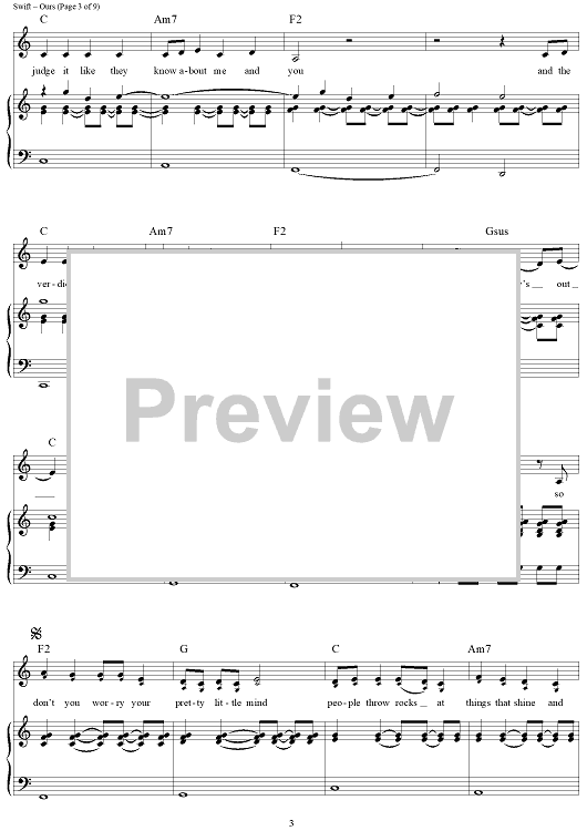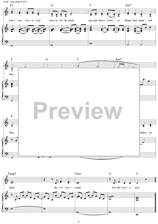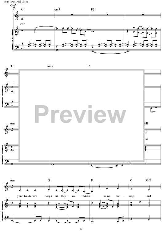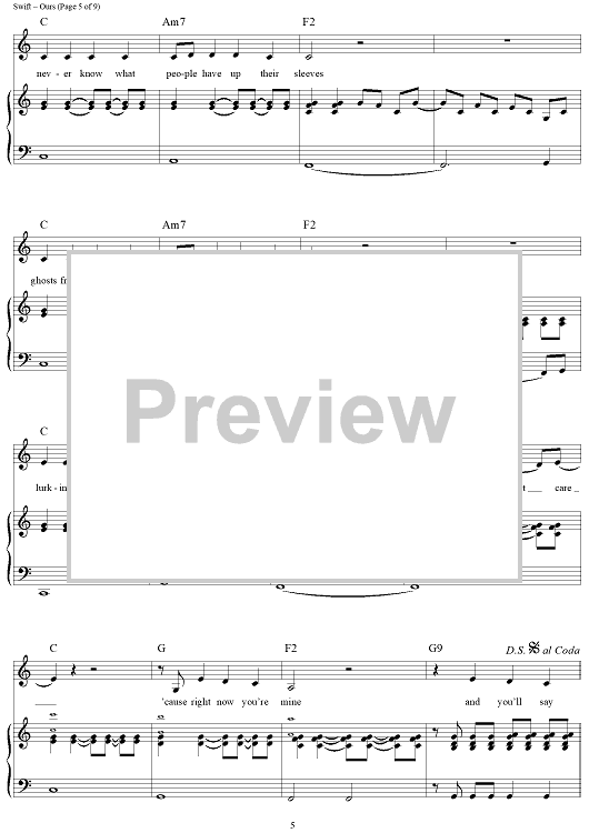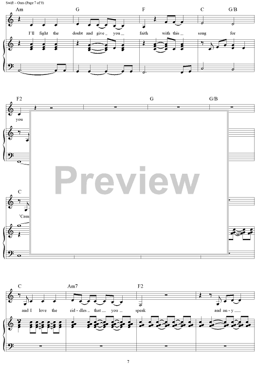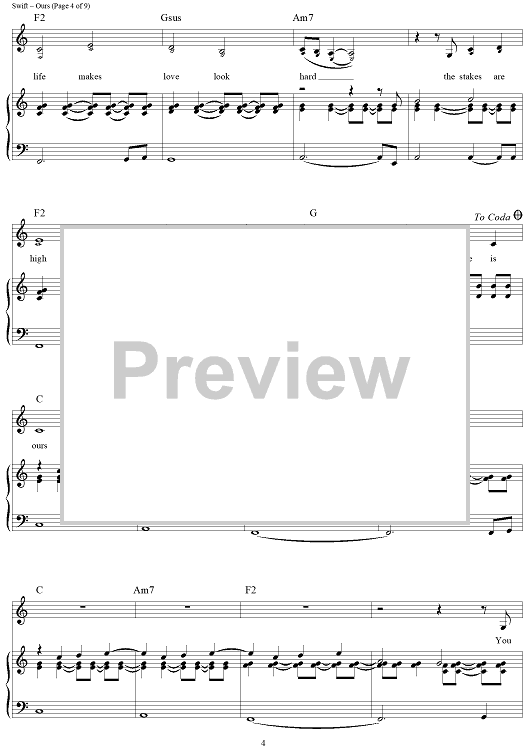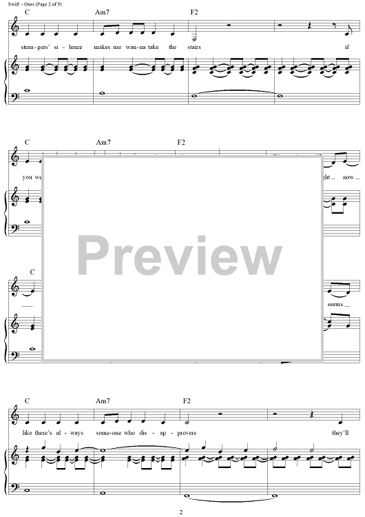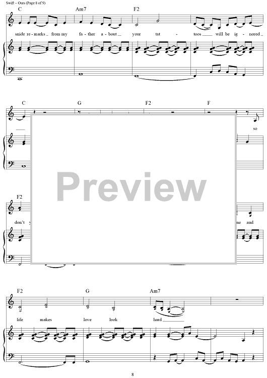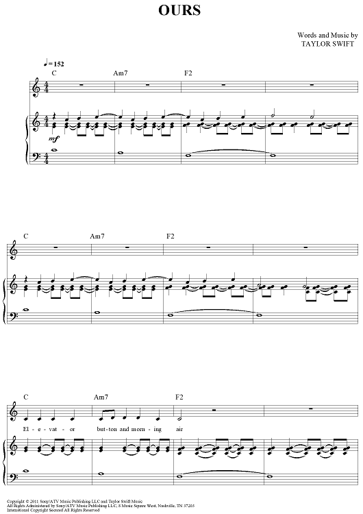 Digital Sheet Music for Ours by Taylor Swift scored for Piano/Vocal/Chords; id:428763