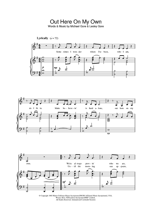Digital Sheet Music for Out Here On My Own by Michael Gore, Lesley Gore, The Kids From Fame scored for Piano/Vocal/Chords; id:385131
