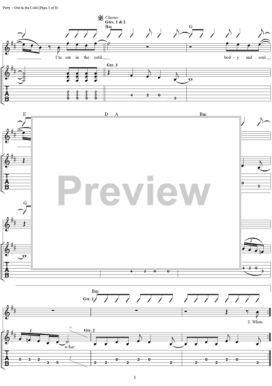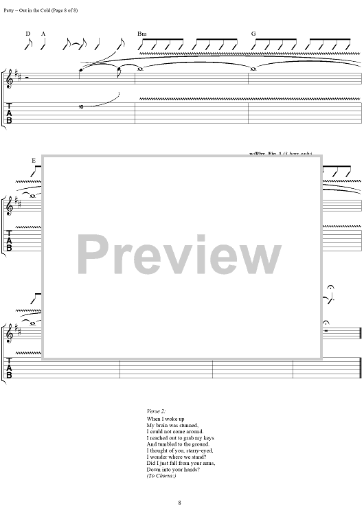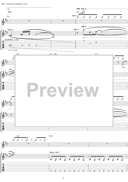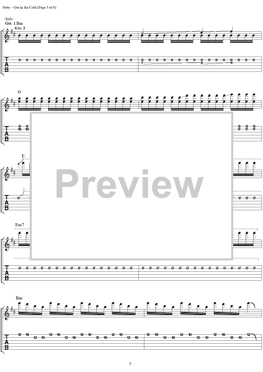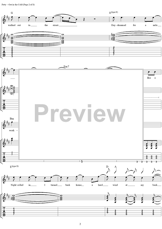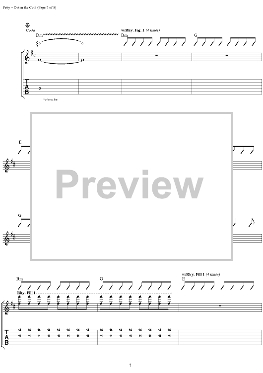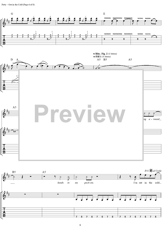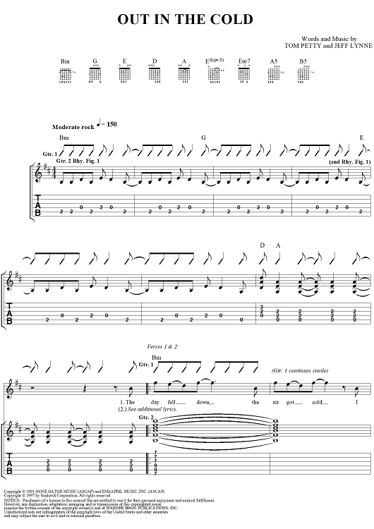 "Out In The Cold" Sheet Music by Tom Petty and The Heartbreakers