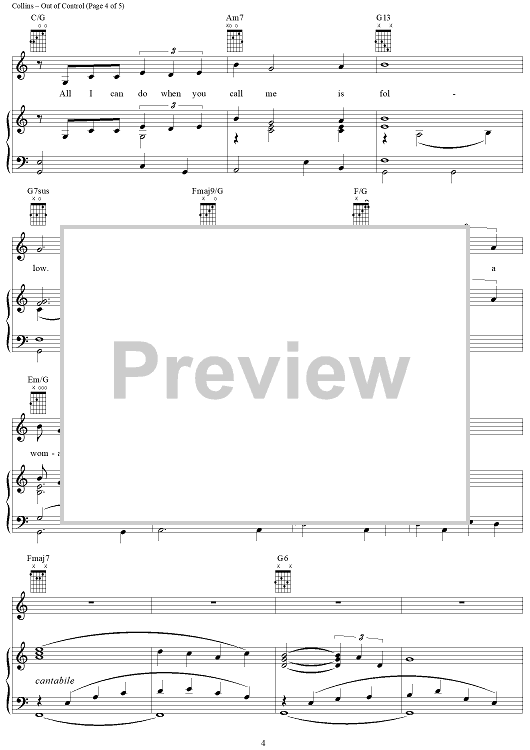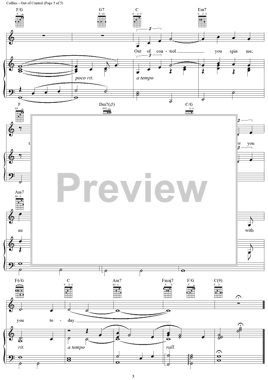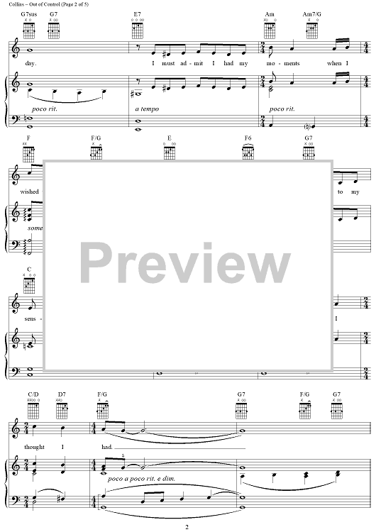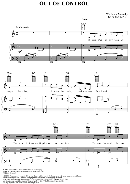 Digital Sheet Music for Out of Control by Judy Collins scored for Piano/Vocal/Chords; id:285951