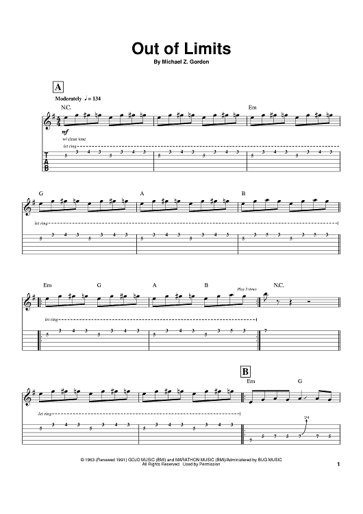 Digital Sheet Music for Out Of Limits by The Ventures, Michael Z. Gordon, The Marketts scored for Guitar Tab; id:374732