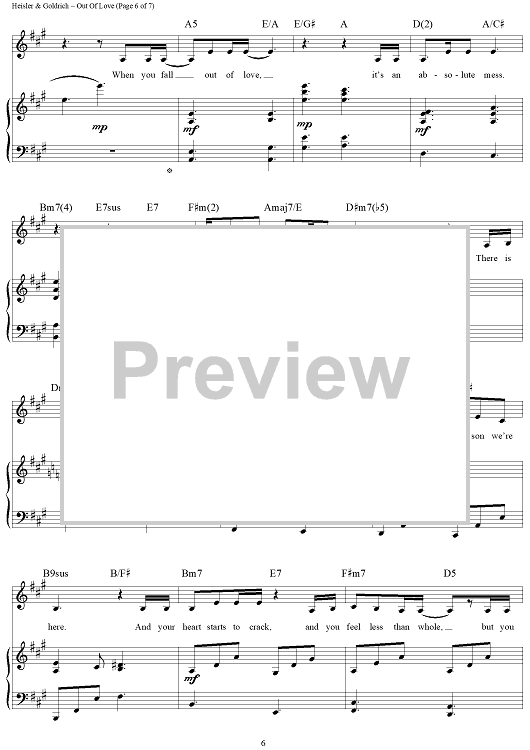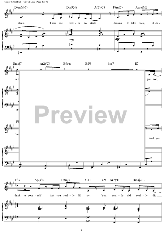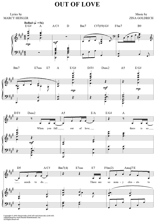 "Out of Love" Sheet Music by Goldrich & Heisler