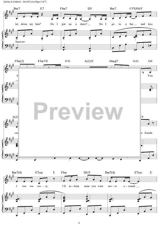 Digital Sheet Music for Out of Love by Goldrich & Heisler scored for Piano/Vocal/Chords; id:454184