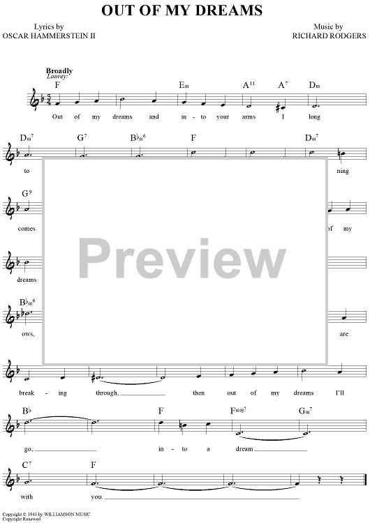Digital Sheet Music for Out of My Dreams by Richard Rodgers, Oscar Hammerstein II scored for Lead Sheet; id:456932
