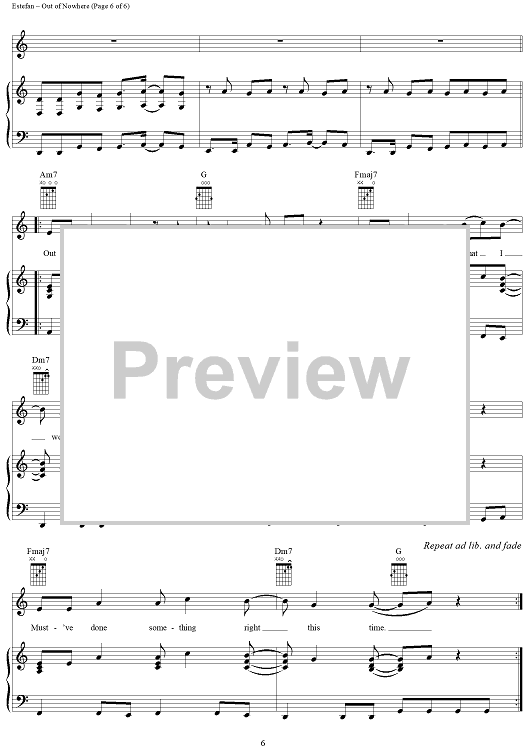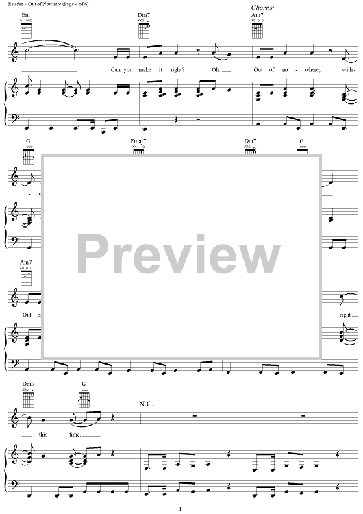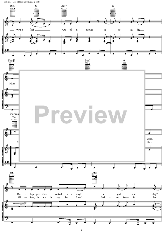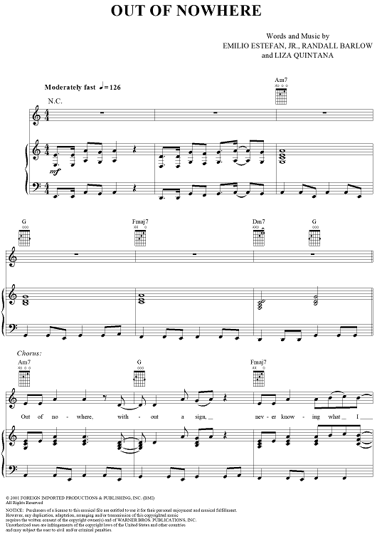 Digital Sheet Music for Out of Nowhere by Gloria Estefan, Randall Barlow, Emilio Estefan Jr., Liza Quintana scored for Piano/Vocal/Chords; id:283433