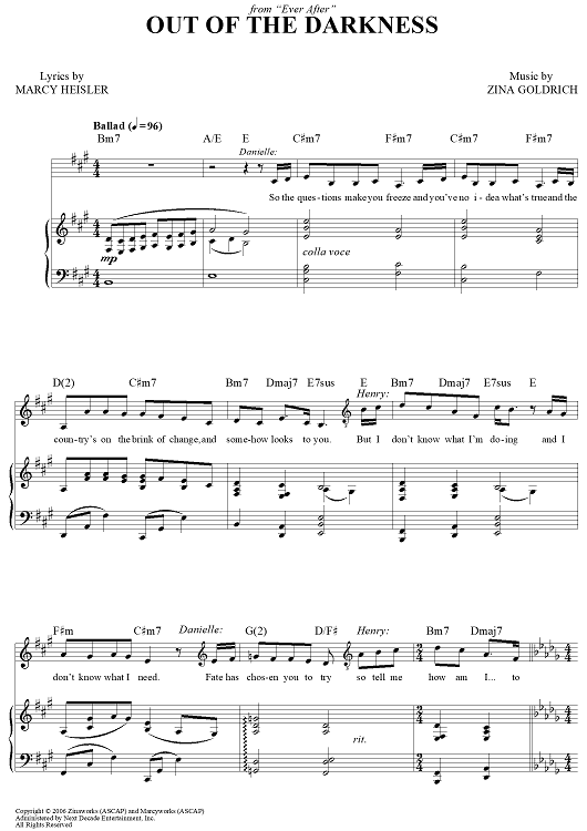 "Out Of The Darkness" Sheet Music by Goldrich & Heisler