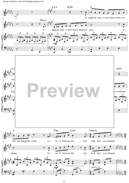 Digital Sheet Music for Out Of The Darkness by Goldrich & Heisler scored for Piano/Vocal/Chords; id:462977
