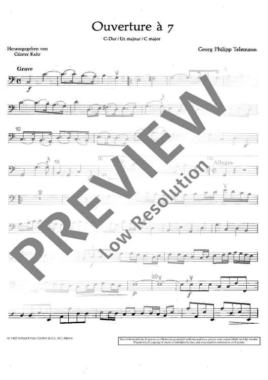 "Ouverture à 7 in C major - Basso Continuo" Sheet Music by Georg Philipp Telemann