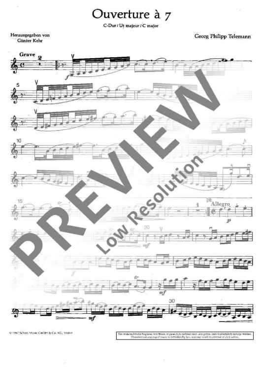 "Ouverture à 7 in C major - Violin I" Sheet Music by Georg Philipp Telemann