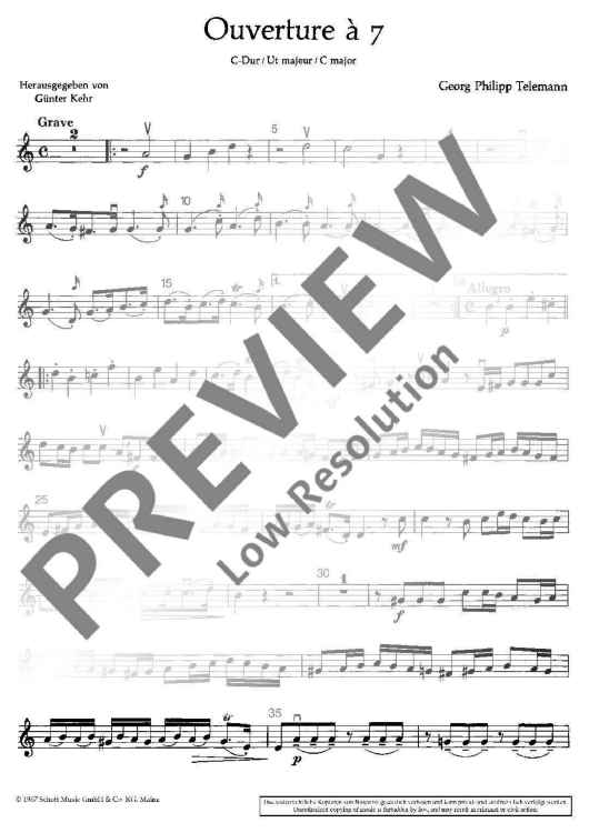 "Ouverture à 7 in C major - Violin II" Sheet Music by Georg Philipp Telemann