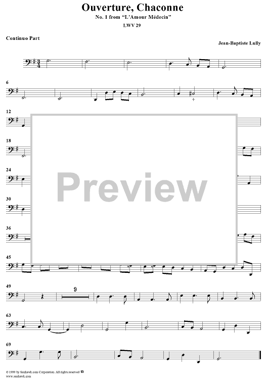 "Ouverture, Chaconne - No. 1 from "L'Amour Médecin" - (LWV 29) - Continuo" Sheet Music by Jean-Baptiste Lully