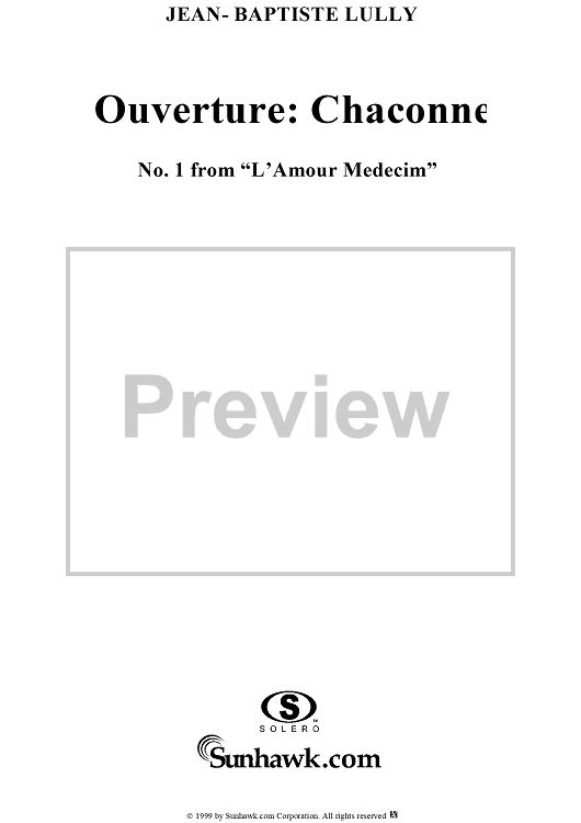 "Ouverture, Chaconne - No. 1 from "L'Amour Médecin" - (LWV 29) - Score" Sheet Music by Jean-Baptiste Lully