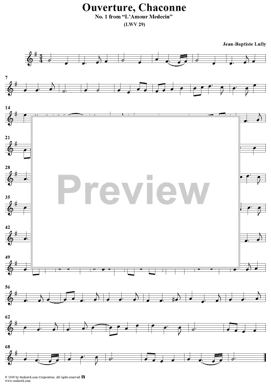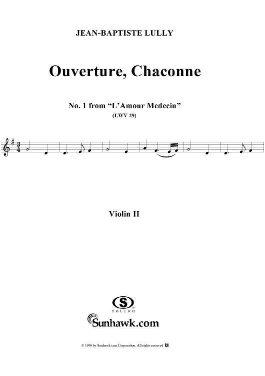 "Ouverture, Chaconne - No. 1 from "L'Amour Médecin" - (LWV 29) - Violin 2" Sheet Music by Jean-Baptiste Lully
