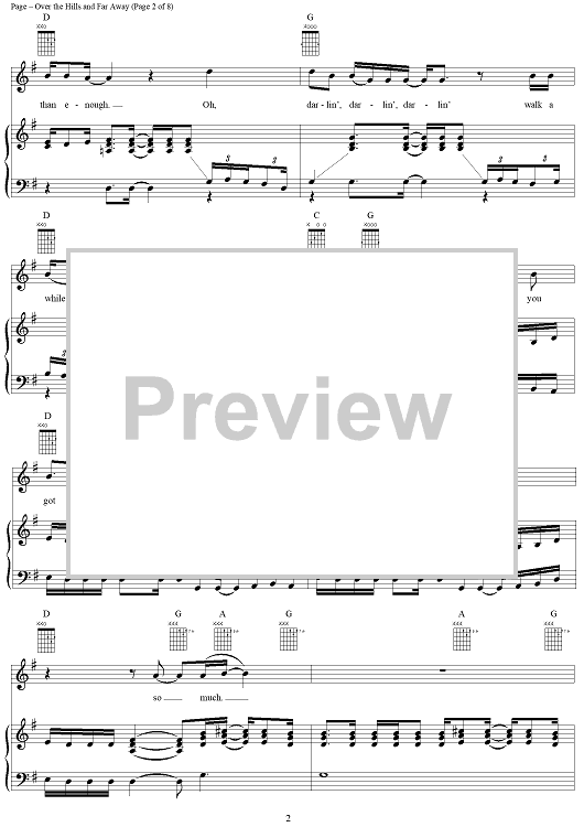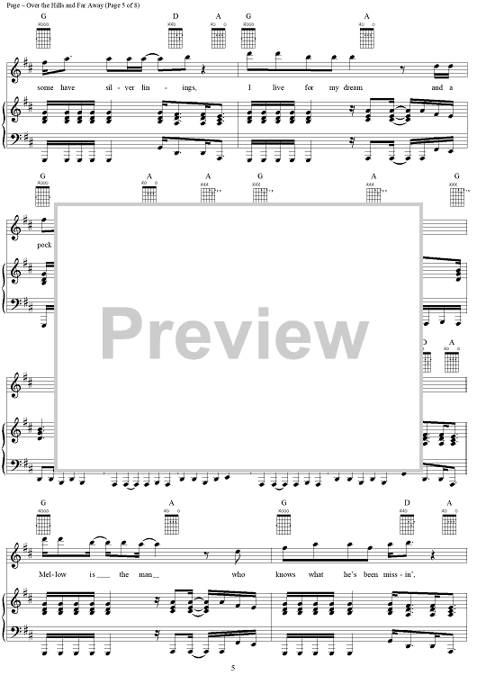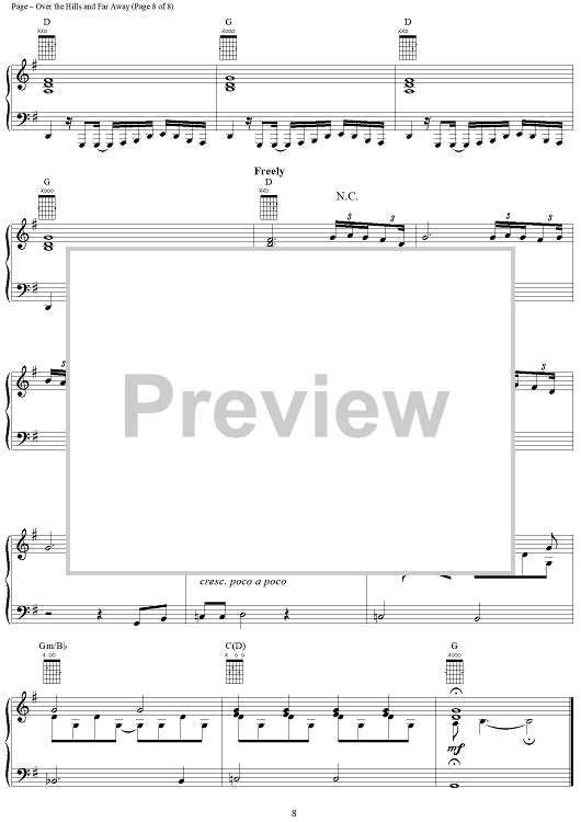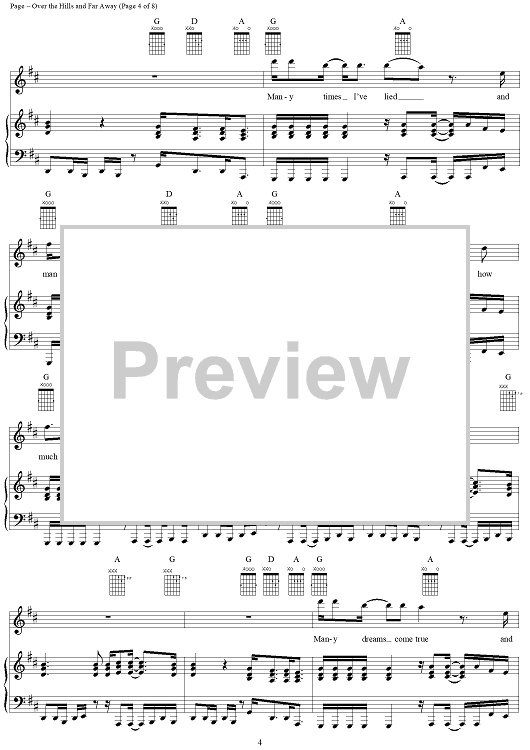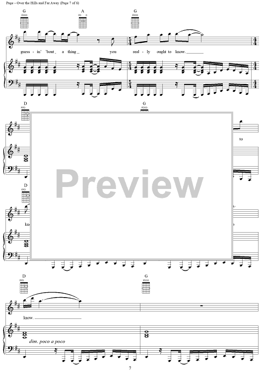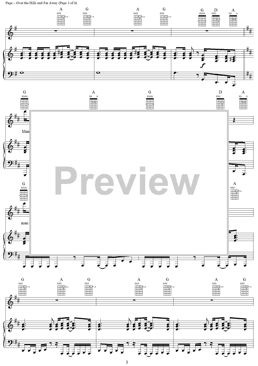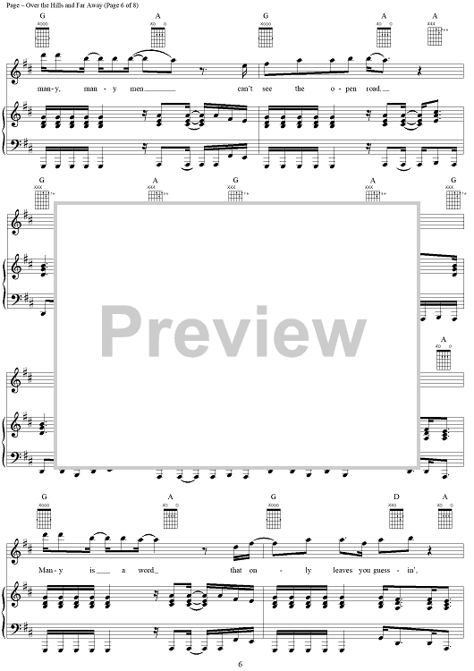 Digital Sheet Music for Over the Hills and Far Away by Jimmy Page, Led Zeppelin, Robert Plant scored for Piano/Vocal/Chords; id:119855
