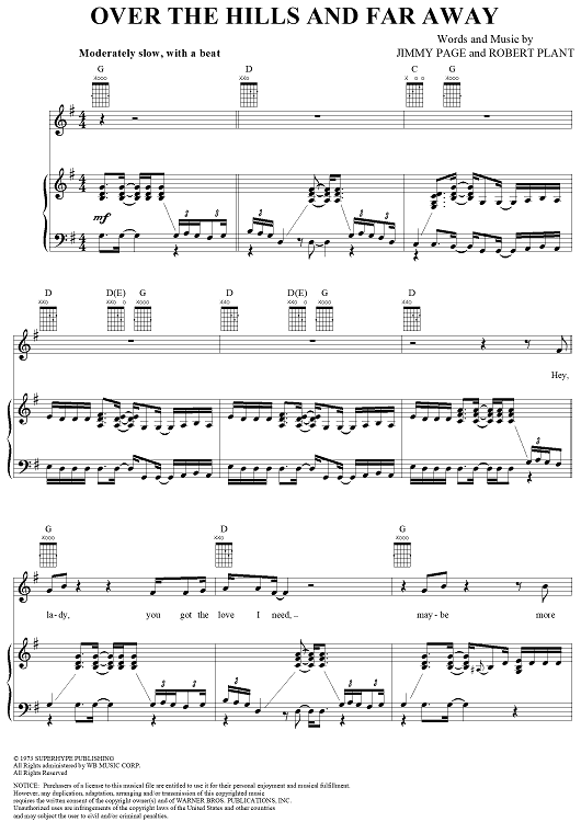 "Over the Hills and Far Away" Sheet Music by Led Zeppelin