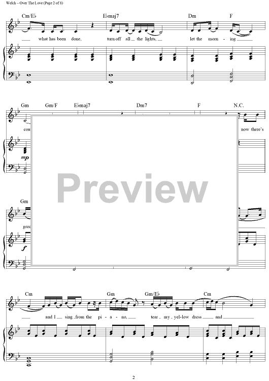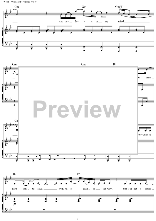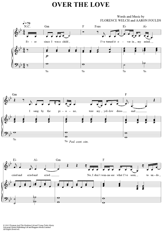 Digital Sheet Music for Over The Love by Florence Welch, Aaron Foulds, Florence and the Machine scored for Piano/Vocal/Chords; id:436728