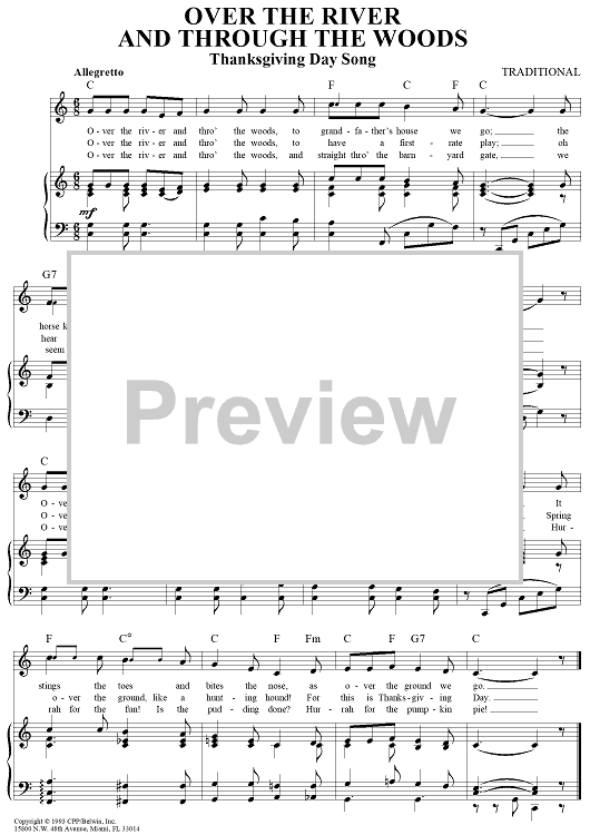 Digital Sheet Music for Over the River and Through the Woods by Traditional scored for Piano/Vocal/Chords; id:241950