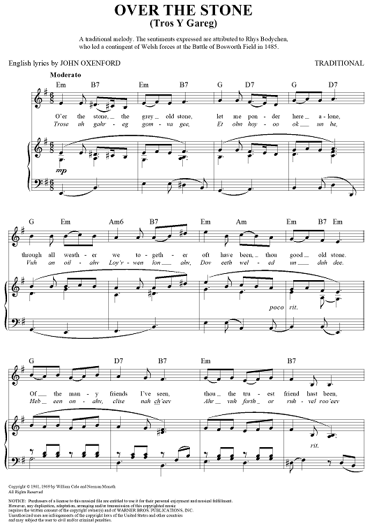 Digital Sheet Music for Over the Stone by Norman Monath, Traditional scored for Piano/Vocal/Chords; id:260867