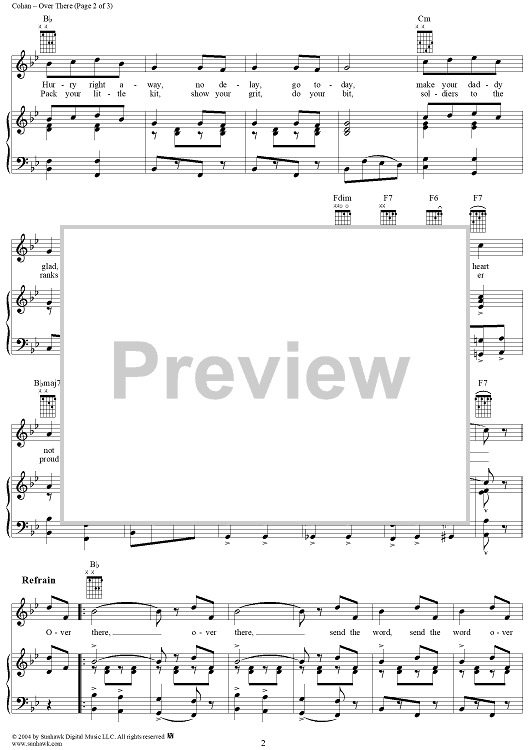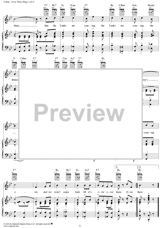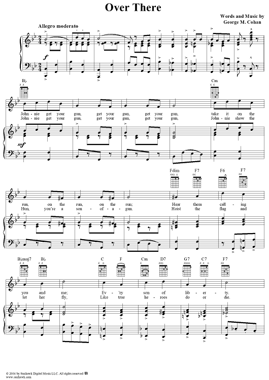 Digital Sheet Music for Over There by George M Cohan scored for Piano/Vocal; id:306351