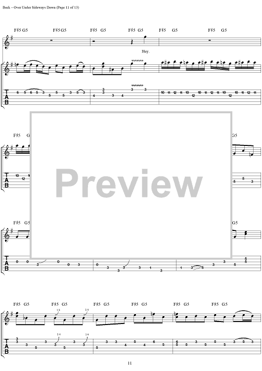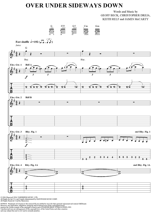 "Over Under Sideways Down" Sheet Music by Yardbirds