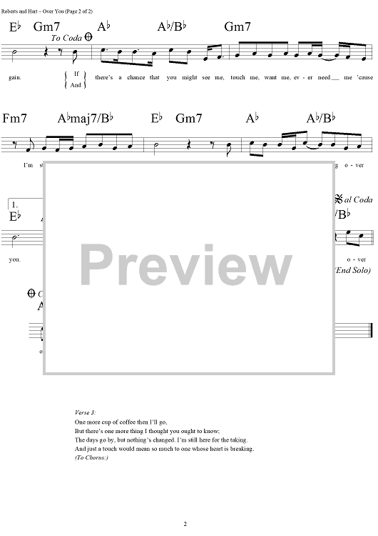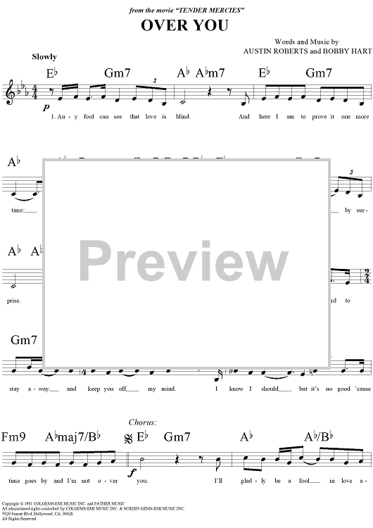 Digital Sheet Music for Over You by Bobby Hart, Austin Roberts scored for Lead Sheet; id:255920
