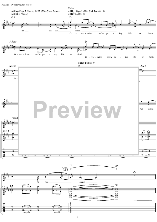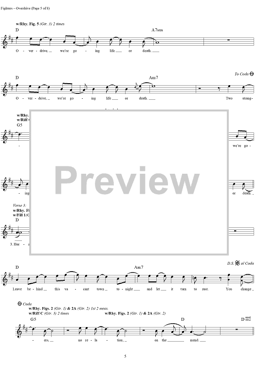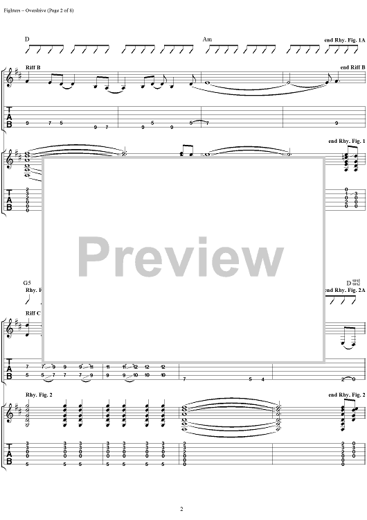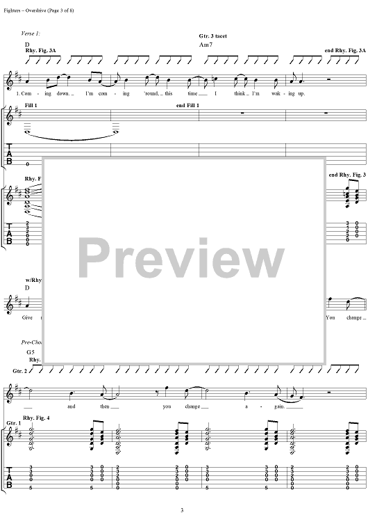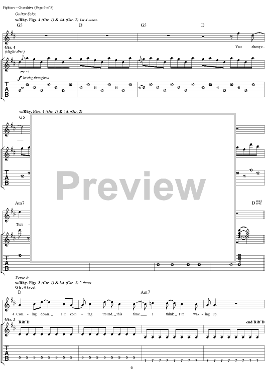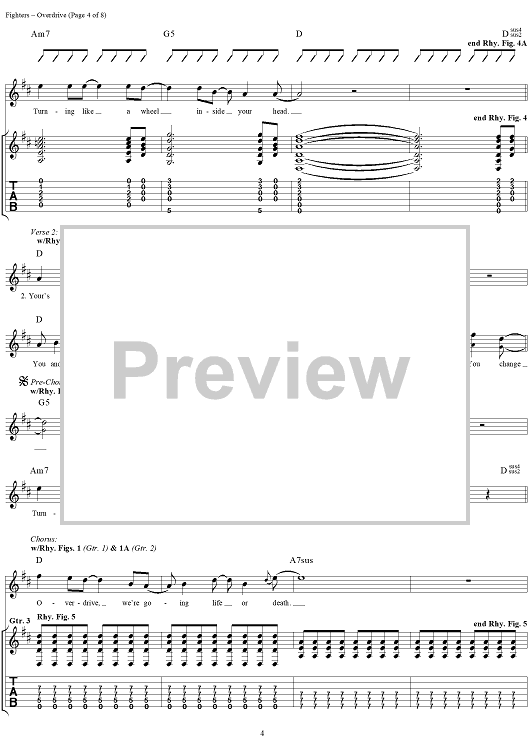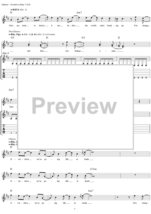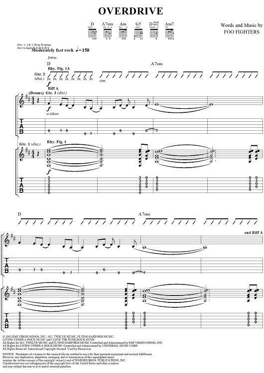 Digital Sheet Music for Overdrive by Foo Fighters scored for Guitar Tab/Vocal; id:296975