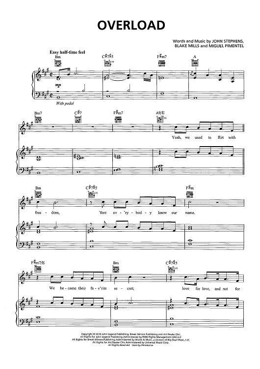 Digital Sheet Music for Overload by John Legend, Miguel, Blake Mills scored for Piano/Vocal/Chords; id:464956