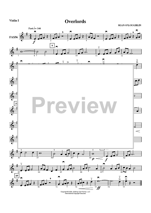 Digital Sheet Music for Overlords - Violin 1 by Sean O'Loughlin scored for Orchestra; id:408354
