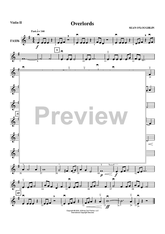 Digital Sheet Music for Overlords - Violin 2 by Sean O'Loughlin scored for Orchestra; id:408355