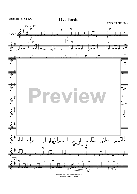 Digital Sheet Music for Overlords - Violin 3 by Sean O'Loughlin scored for Orchestra; id:408356