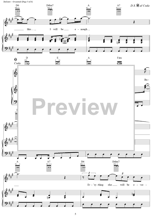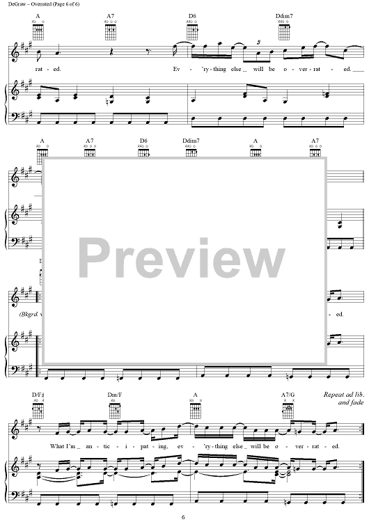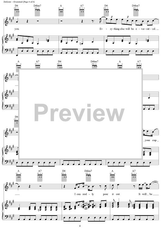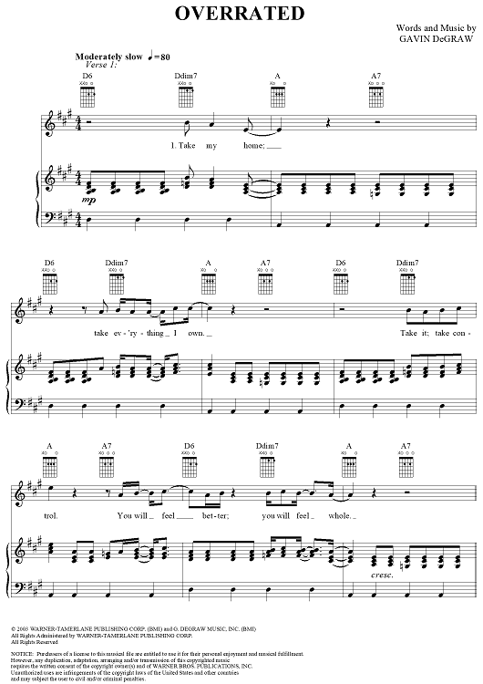 Digital Sheet Music for Overrated by Gavin DeGraw scored for Piano/Vocal/Chords; id:361857