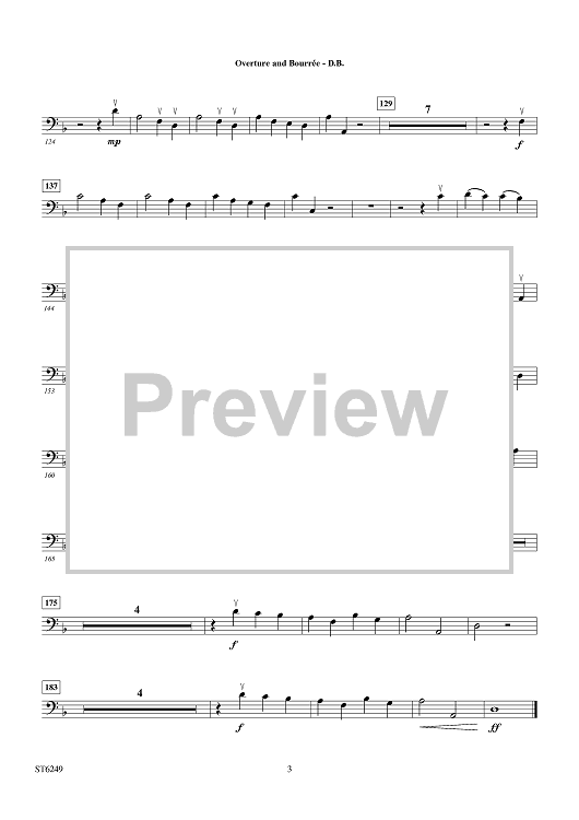 Digital Sheet Music for Overture and Bourrée from Il Pastor Fido - Double Bass by George Frideric Handel, Bob Lipton scored for String Orchestra; id:421905