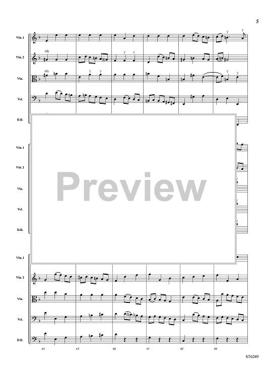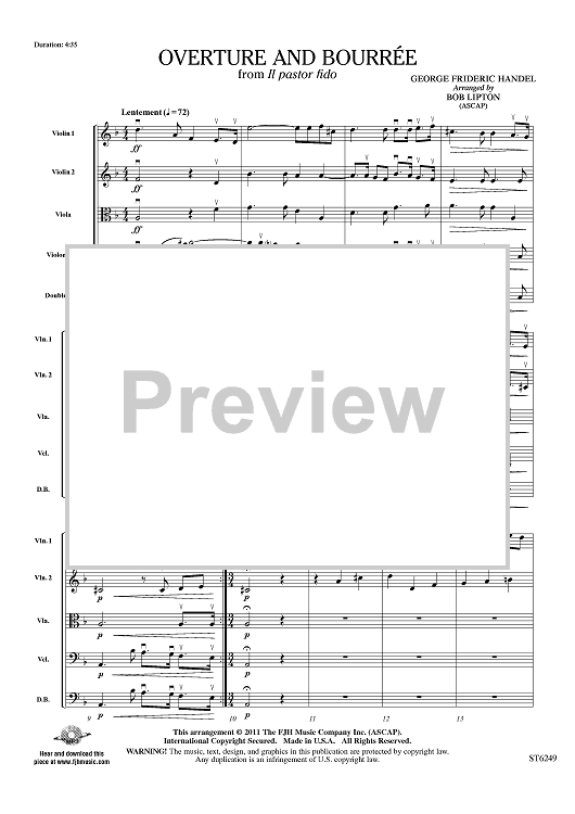 Digital Sheet Music for Overture and Bourrée from Il Pastor Fido - Score by George Frideric Handel, Bob Lipton scored for String Orchestra; id:421900