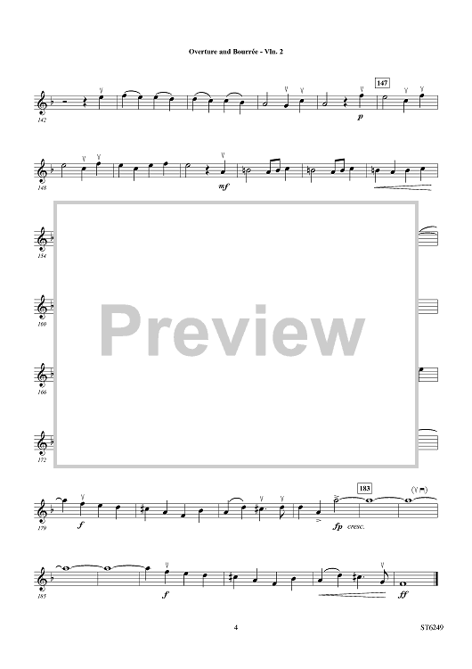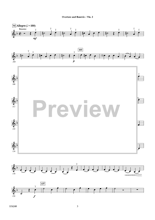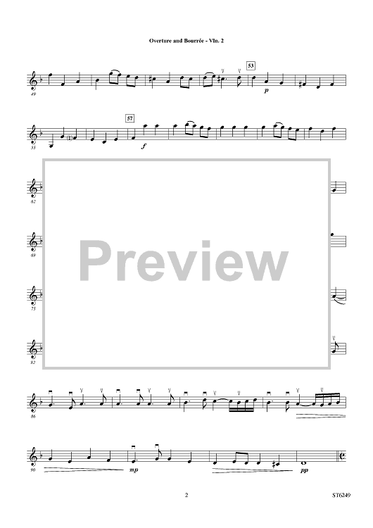 Digital Sheet Music for Overture and Bourrée from Il Pastor Fido - Violin 2 by George Frideric Handel, Bob Lipton scored for String Orchestra; id:421902