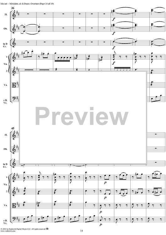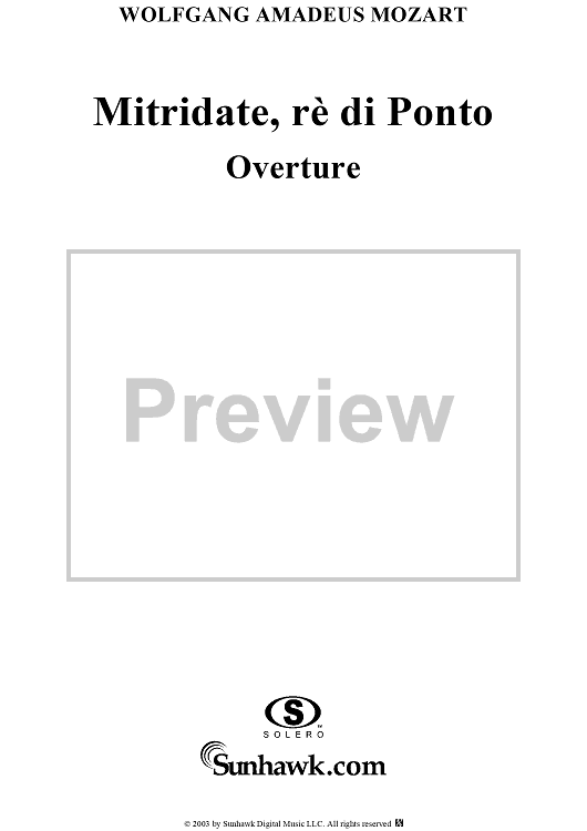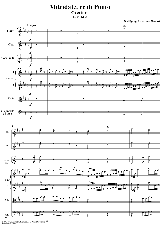 Digital Sheet Music for Overture, from "Mitridate, rè di Ponto", K74a (K87) - Full Score by Wolfgang Amadeus Mozart scored for Orchestra; id:253721