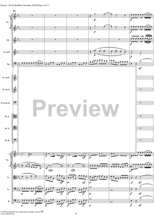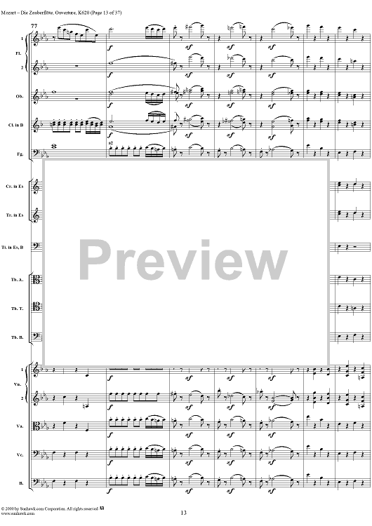 Digital Sheet Music for Overture from opera "Die Zauberflöte", K620 - Full Score by Wolfgang Amadeus Mozart scored for Orchestra; id:251872