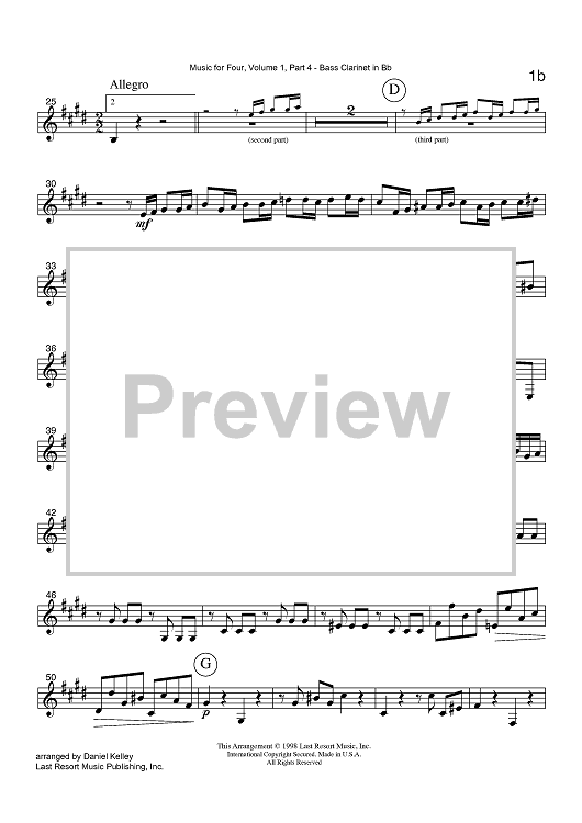 Digital Sheet Music for Overture - from Suite #3 in D Major - Part 4 Bass Clarinet in Bb by , Johann Sebastian Bach, Daniel Kelley scored for Instrumental Quartet; id:423442