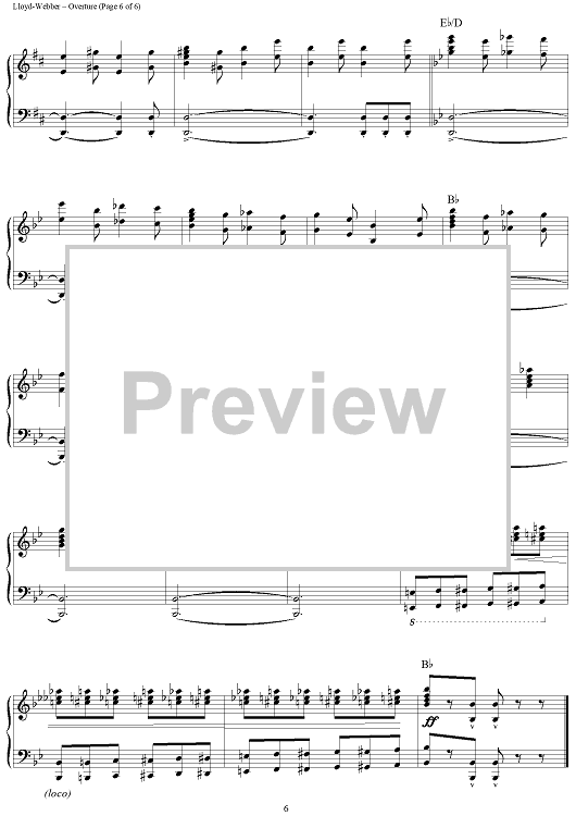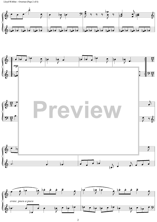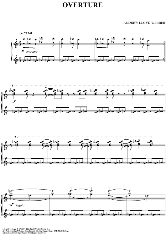 Digital Sheet Music for Overture by Andrew Lloyd Webber scored for Piano Solo; id:452990