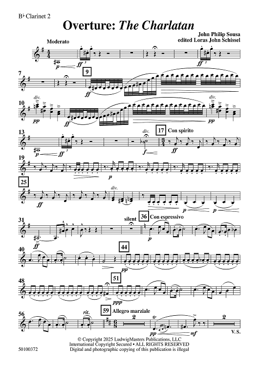 Digital Sheet Music for Overture: The Charlatan - Bb Clarinet 2 by John Philip Sousa, Loras John Schissel scored for Concert Band; id:507389
