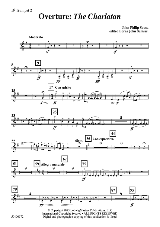 Digital Sheet Music for Overture: The Charlatan - Bb Trumpet 2 by John Philip Sousa, Loras John Schissel scored for Concert Band; id:507399