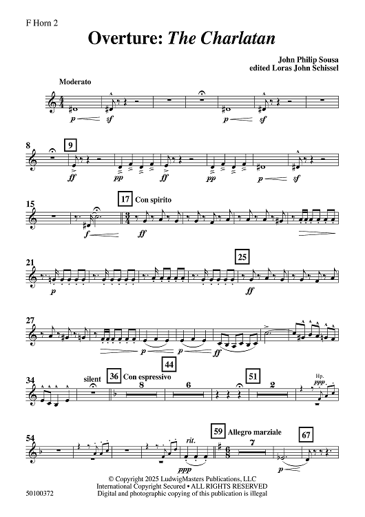 Digital Sheet Music for Overture: The Charlatan - F Horn 2 by John Philip Sousa, Loras John Schissel scored for Concert Band; id:507401