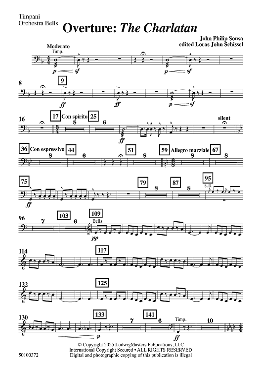 Digital Sheet Music for Overture: The Charlatan - Timpani / Orchestra Bells by John Philip Sousa, Loras John Schissel scored for Concert Band; id:507412