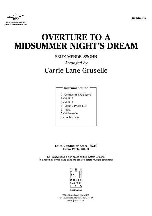 Digital Sheet Music for Overture to a Midsummer Night's Dream - Score by Felix Mendelssohn, Carrie Lane Gruselle scored for Orchestra; id:455531