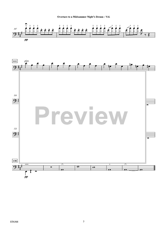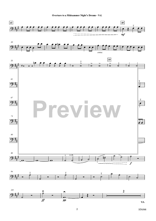 Digital Sheet Music for Overture to a Midsummer Night's Dream - Violoncello by Felix Mendelssohn, Carrie Lane Gruselle scored for Orchestra; id:455536