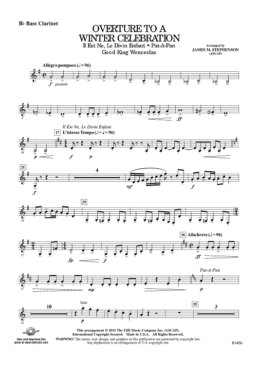 Digital Sheet Music for Overture to a Winter Celebration - Bb Bass Clarinet by Traditional, James M. Stephenson scored for Symphonic Band; id:415873
